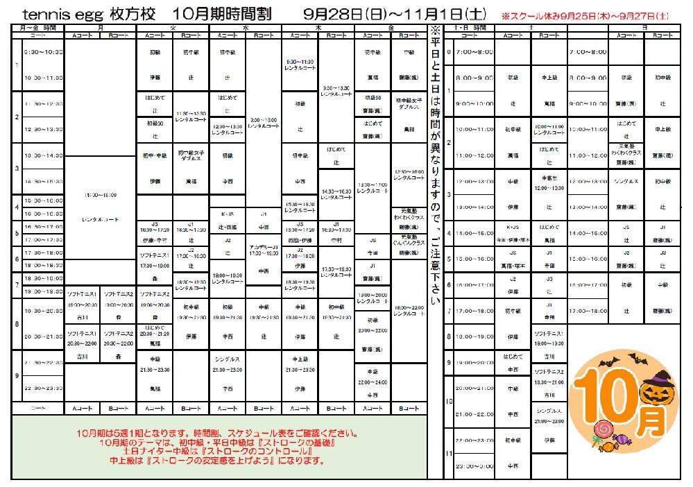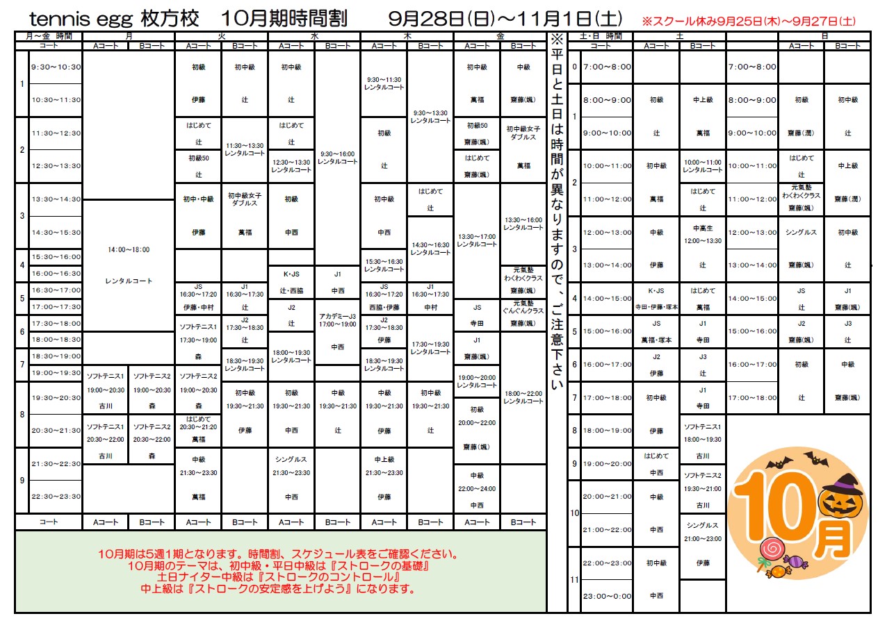 10月期は5週1期となります。時間割、スケジュール表をご確認ください。 PDFはこちら