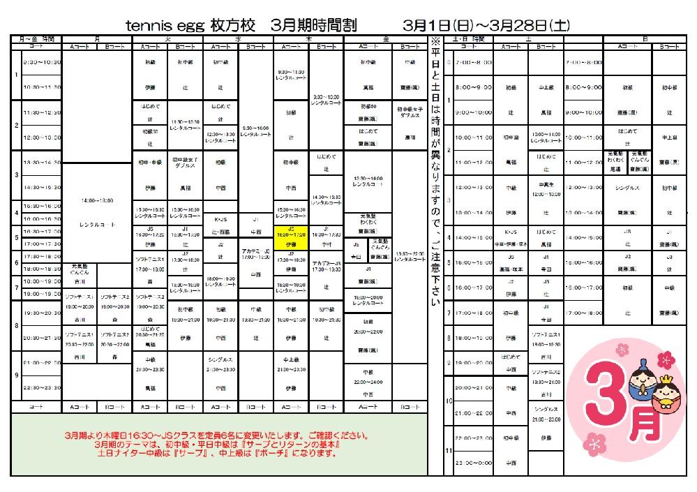 2月期より木曜日17:30〜19:30アカデミーJ3クラスを開講いたします。 (※アカデミーコートで開講中のクラスが枚方校コートに移動となります) PDFはこちら