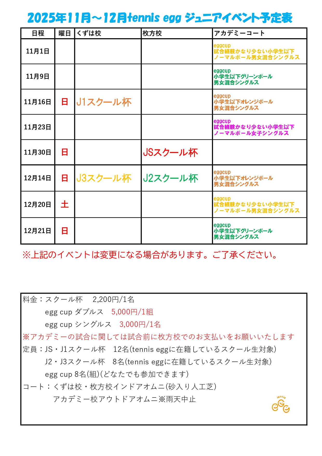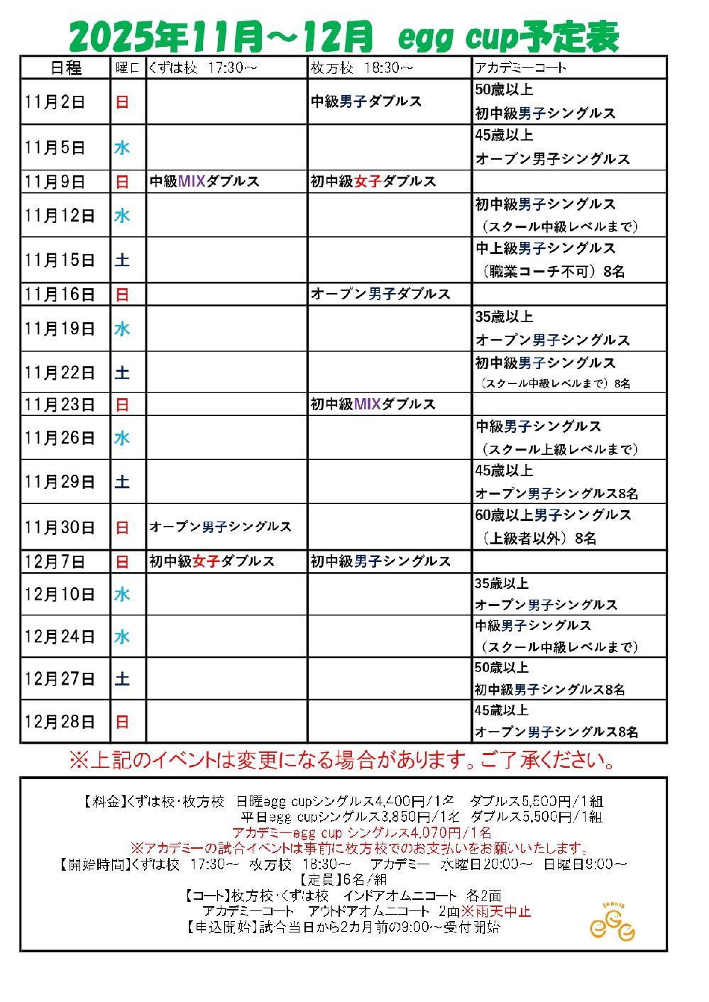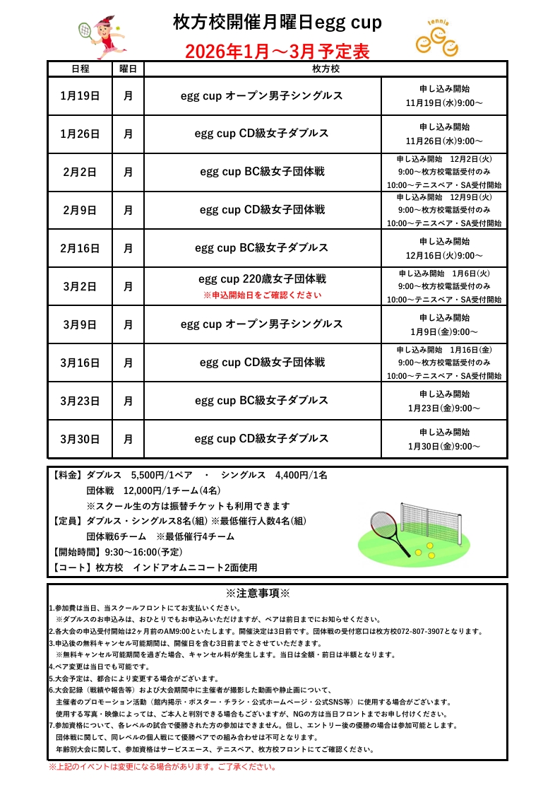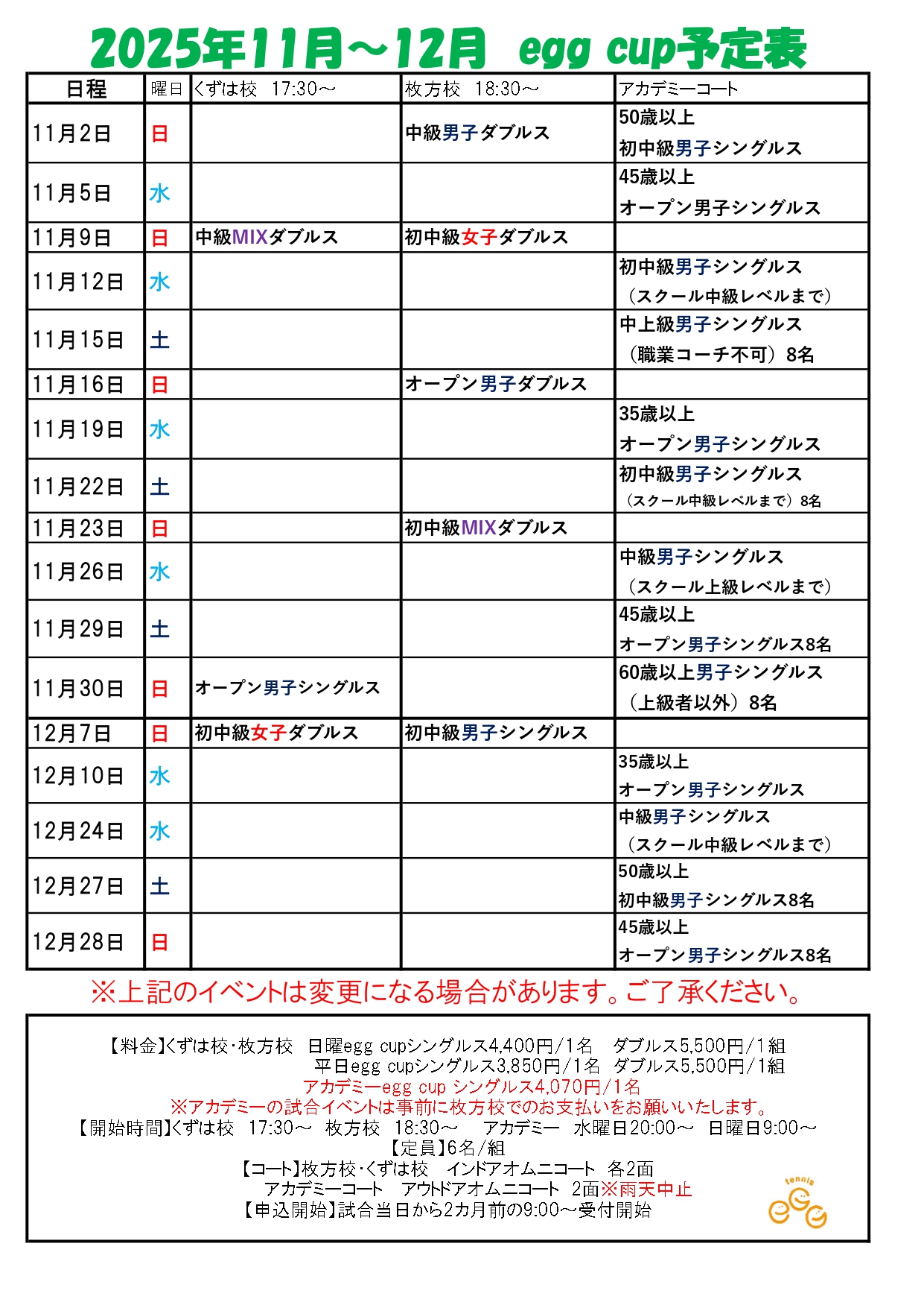 HOME > イベント予定 : tennis egg 試合イベント予定