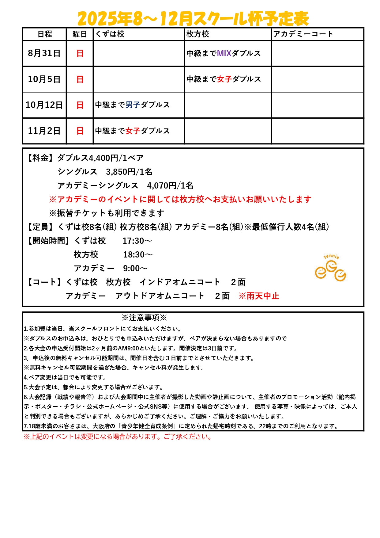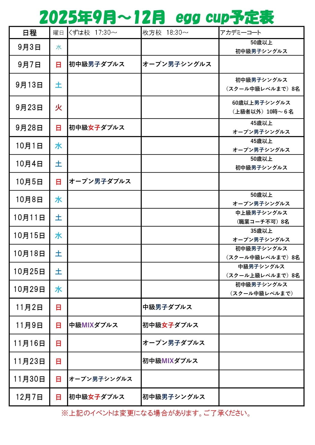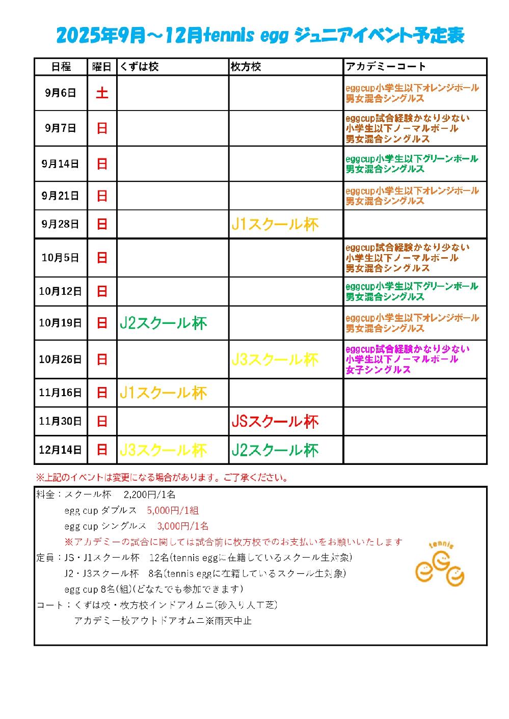 HOME > イベント予定 : tennis egg 試合イベント予定